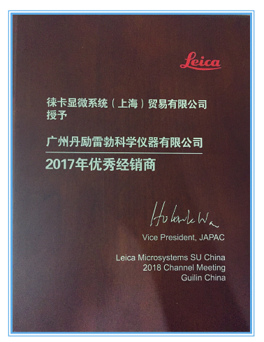 榮獲徠卡顯微系統(tǒng)(上海)貿(mào)易有限公司“2017年優(yōu)秀經(jīng)銷商獎”