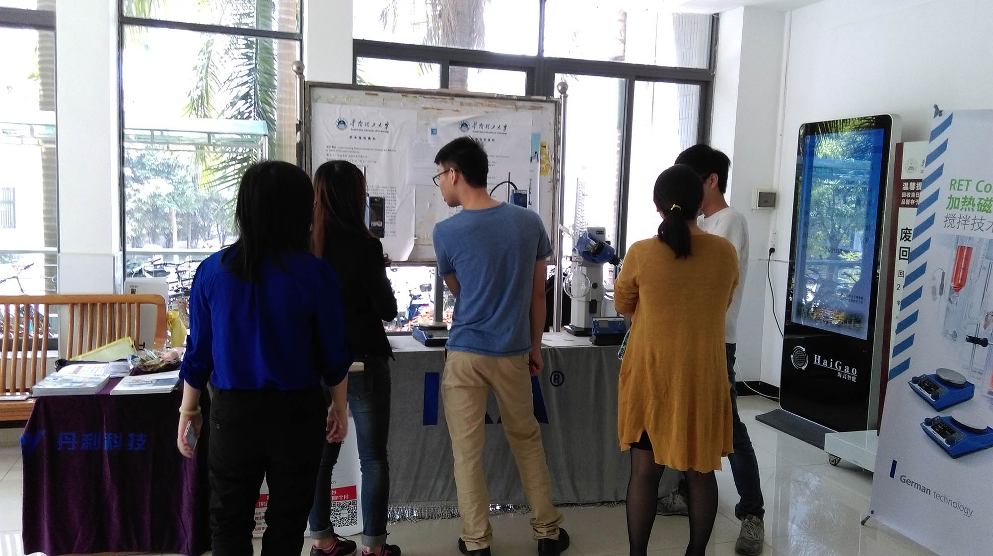 3月26日與4月16日我們分別在中山大學(xué)豐盛堂A106和華南理工大學(xué)唯美樓大堂舉辦了“丹利服務(wù)月,設(shè)備現(xiàn)場(chǎng)維護(hù)—校園行”活動(dòng),為吸引高校的老師學(xué)生來參加活動(dòng),當(dāng)天我們提供儀器的免費(fèi)維護(hù),并給在當(dāng)天下單的客戶優(yōu)惠政策。我們?cè)诨顒?dòng)前一周就已在校園的各實(shí)驗(yàn)樓張貼好海報(bào),派專門人員去各樓實(shí)驗(yàn)室發(fā)放活動(dòng)宣傳單,并登記好需要維護(hù)的設(shè)備型號(hào)。