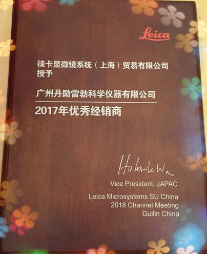 2018年1月26日,作為徠卡公司廣東省醫(yī)療及公共事業(yè)的簽約代理,廣州丹勵雷勃科學(xué)儀器有限公司(丹利集團(tuán)旗下子公司)參加了徠卡2018年度經(jīng)銷商大會暨答謝宴。2017年度,廣州丹勵雷勃科學(xué)儀器有限公司共計完成徠卡訂貨量130.6萬美金(僅寬場顯微鏡部分),YOY同比增長131%,喜獲徠卡2017年度優(yōu)秀經(jīng)銷商大獎!