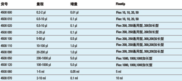 Finnpipette Digital單道移液器技術(shù)規(guī)格 |